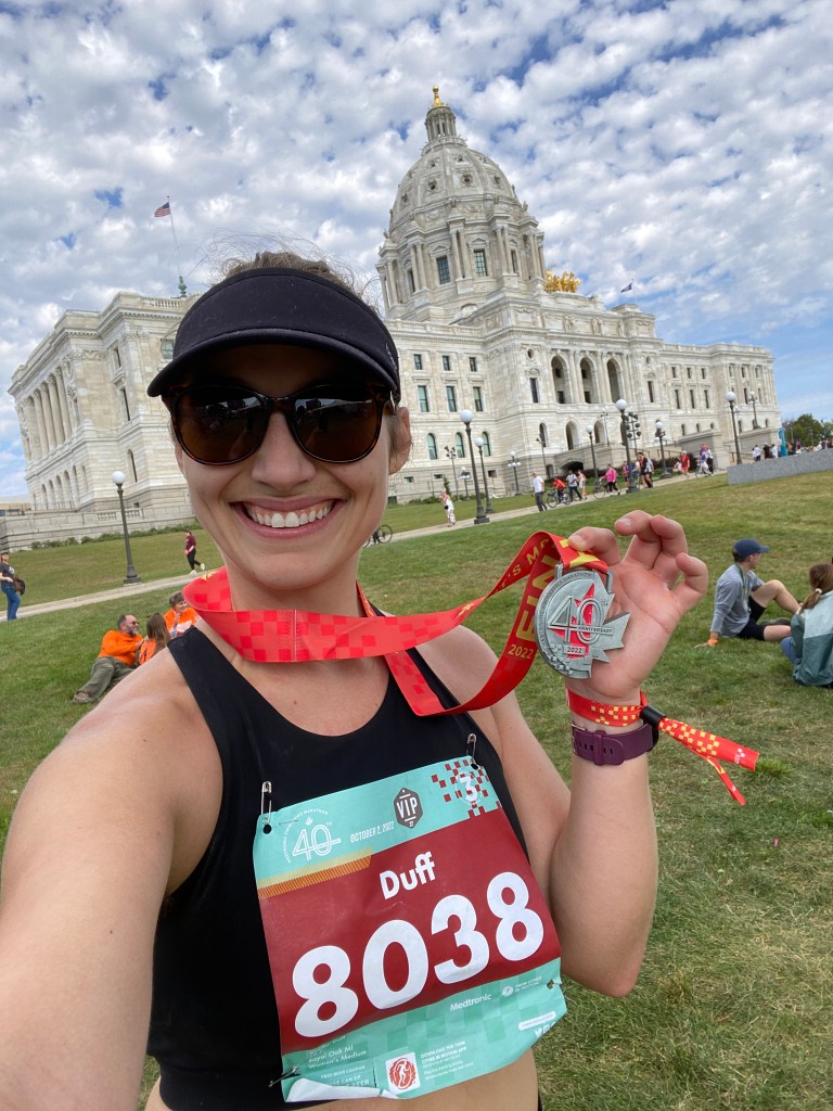 I am so incredibly happy that I chose to go with the Twin Cities Marathon as my Minnesota Marathon. I was debating between this one and the Grandma’s Marathon for a while. Grandma’s Marathon is often voted as the best race in Minnesota because of the scenery; but I think Twin Cities Marathon may have had them beat. The course was challenging, but the scenery of downtown Minneapolis, to lakes, to the Mississippi River, to downtown St. Paul never left me without something to look at. The fans were evenly spaced, and there was never a period longer than half a mile without someone cheering us on. To make matter’s even better, there was plenty of fuel stations along the course with both water and Nuun so if you are a runner who doesn’t bring a hydration pack, you could make it the whole time without one. The race was also packed with people! After the race, I learned that Twin Cities Marathon was one of the few races that were back to Pre-Pandemic participation numbers. This race is also beginner friendly.