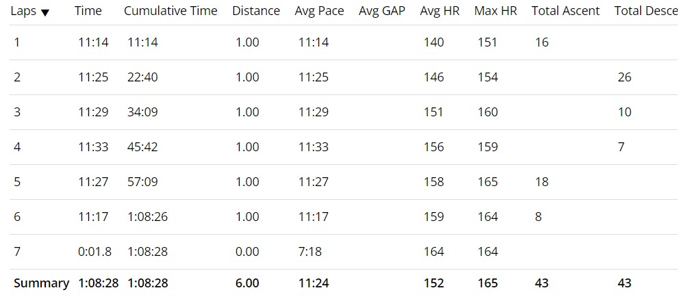 Thursday – Easy Run: 6 Miles