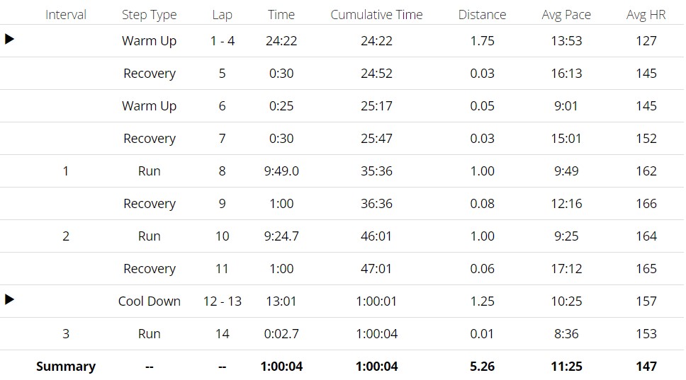 Boy was I not feeling well today, but I still got out and did my run despite it. Since I took the Monday/Tuesday run off, I wanted to get slightly more mileage today. Made the Warm Up and Cool down jogs 1.25 miles instead of only 1 mile.