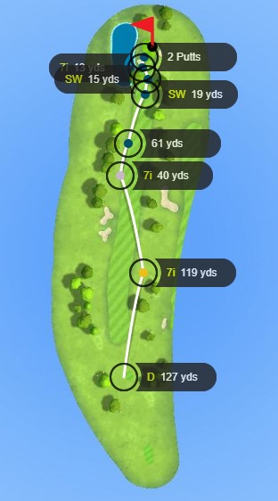 Aside from my Par, and a couple of pretty good drives and a 3 wood shot, the play of the game was on hole 7. Off the tee box I landed deep, deep, deep in the rough. Thankfully, we were able to find my ball and with a stroke of luck, I was able to use my sand wedge to get my ball out of the rough and land it right on the fringe of the green. I felt like a real professional with that move.